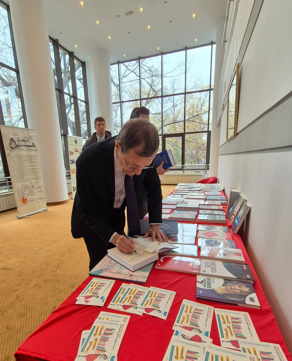 Sesiunea științifică a avut loc în Ajunul Sfântului Nicolae, în data de 5 decembrie 2024, ora 11.00, în Amfiteatrul „Ion Heliade Rădulescu” al Bibliotecii Academiei Române (Calea Victoriei nr. 125 sector 1 București)” în prezența unui public numeros, diplomați, jurnaliști, intelectuali, oameni de cultură, bibliotecari, scriitori, editori, elevi și profesori ai Colegiului Național „Eugen Lovinescu”, coordonați de doamna profesor Camelia Neagu, onorând lecția de literatură și diplomație culturală în Amfiteatrul „Ion Heliade Rădulescu” al Bibliotecii Academiei Române.