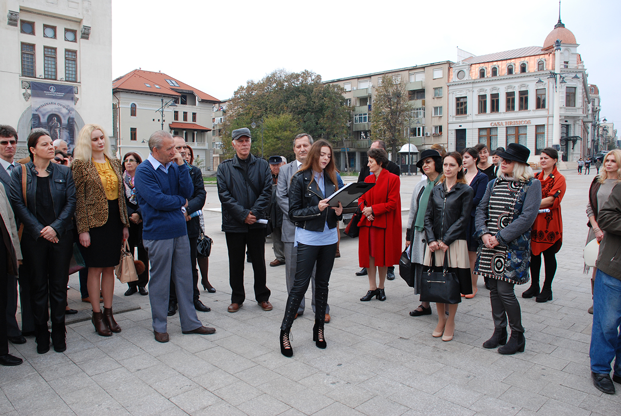 „În antichitatea elină și romană – a nuanțat poeta Aura Christi – barbari erau considerați străinii de dincolo de hotarele Cetății și ale Imperiului. Grecii din vechea Eladă îi tratau ca barbari și pe cei care nu le vorbeau limba. Pentru obrăznicia de a fi văzut ceea ce nu se cuvenea să fie văzut și de a fi descris ceea ce nu se cădea, unul dintre răsfățații curții imperiale, unul dintre cei mai privilegiați artiști ai vremii, poetul Publius Ovidius Naso a fost exilat, așadar, departe de granițele Imperiului Roman, printre barbarii din Tomis. Barbari, care l-au primit cu brațele deschise, l-au iubit și l-au onorat, urmărind felul în care silueta-i hieratică se îndepărta, serile, pe malul mării. Pedepsit cu exilul de durata a nouă ani de Împăratul Augustus, Ovidiu a avut șansa și forța de a transforma exilul în dar. Un dar fertil, de vreme ce aici, printre tomitani, a scris enorm. Aici a scris în total 9 cărți, mai exact, ciclurile Tristele și Ponticele. Răzbunarea barbarilor e o declarație de iubire, făcută unuia dintre cei mai mari poeți ai antichității, considerat egal cu alți clasici ai acelor vremuri binecuvântate: Horațiu și Virgiliu. Dintre creatorii acelei epoci de aur a omenirii, Ovidiu e singurul care a fost exilat, găsindu-și sfârșitul aici, pe malul mării și fiind sărbătorit cu fast în acest octombrie luminos, înfrigurat.”